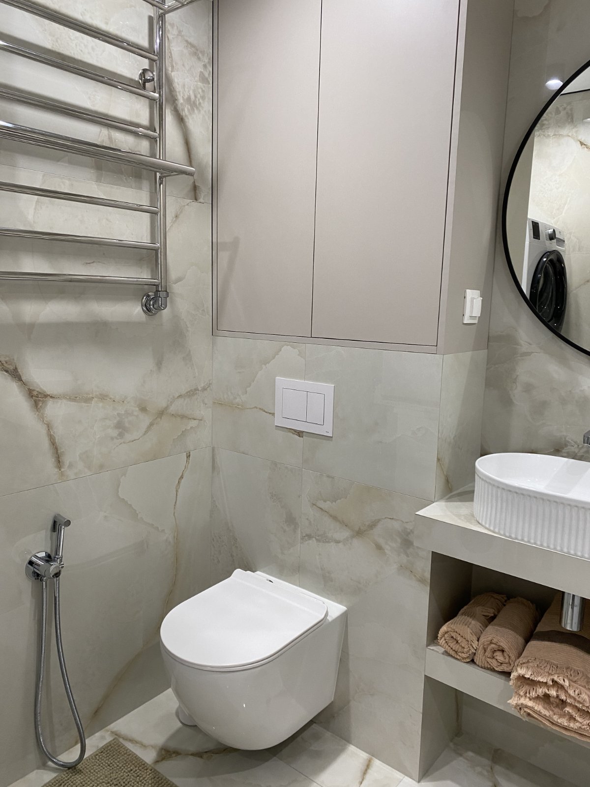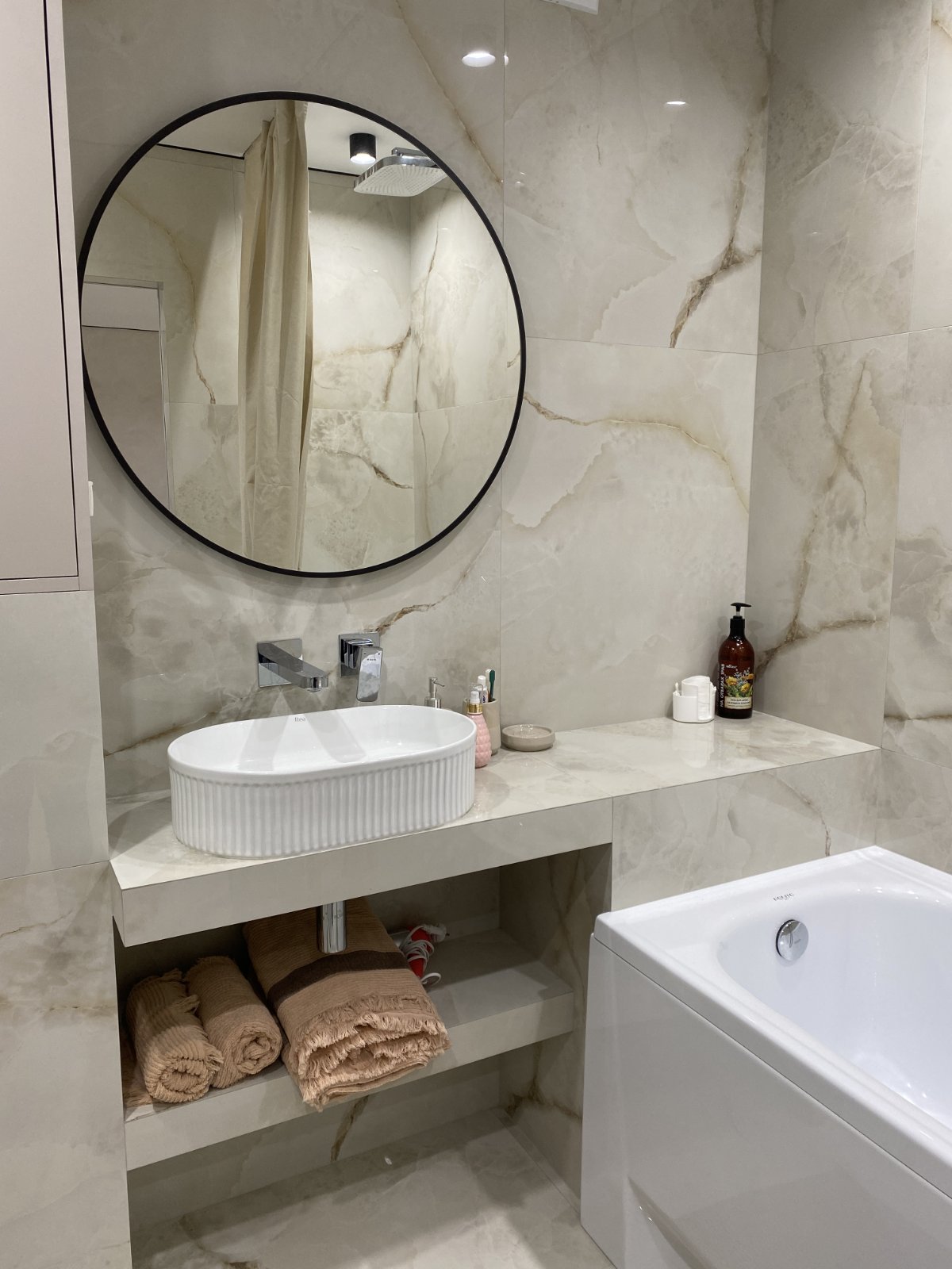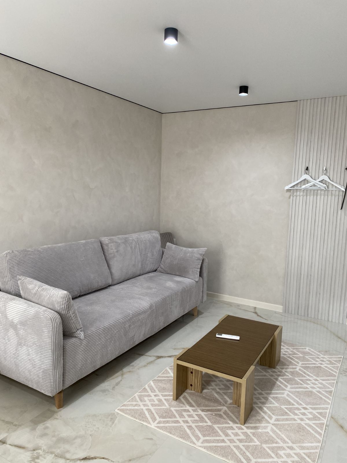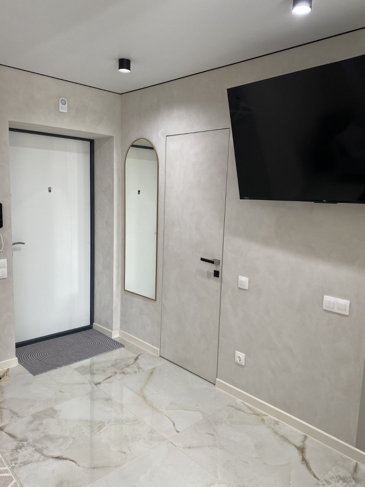 Новая квартира с дизайнерским ремонтом и всем необходимым для комфортного пребывания. В квартире есть двуспальная кровать , с всегда чистым постельным бельём , раскладной диван с размером спального места1.6м.2.0м., комплект чистых полотенец, микроволновая печь, духовой шкаф, вытяжка, чайник, индукционная плита, столовые приборы, штопор, вся необходимая посуда, бокалы, кондиционер, чай , кофе, моющие средства, шампунь, утюг, фен, стиральная машина, бойлер.