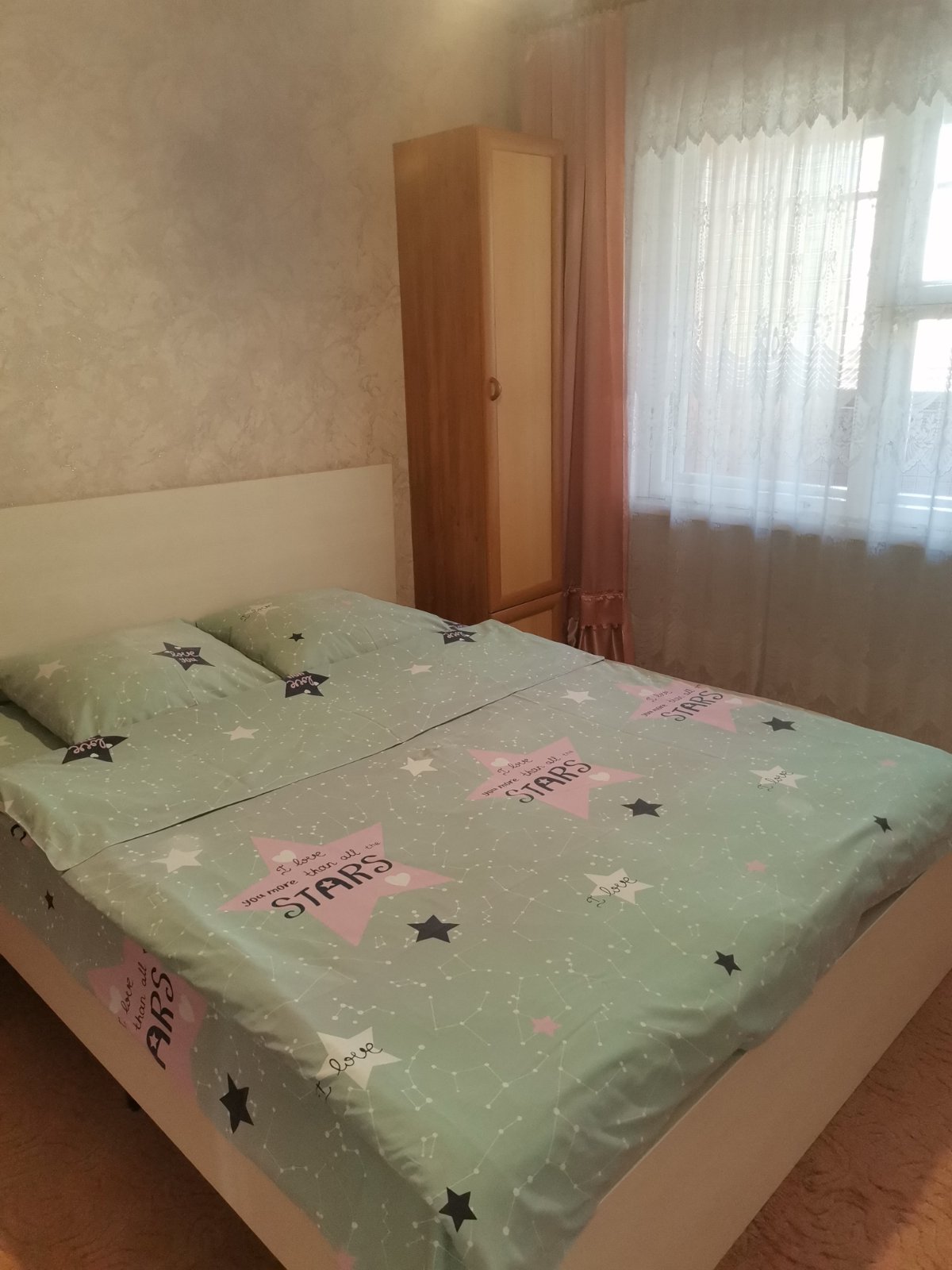 постельное белье, полотенца, средства гигиены). Район Восток, удобно расположена, рядом супермаркеты Грин, Алми, Евроопт, Санта, остановки общественного транспорта. Парковка возле дома. Вмещает до 10 гостей