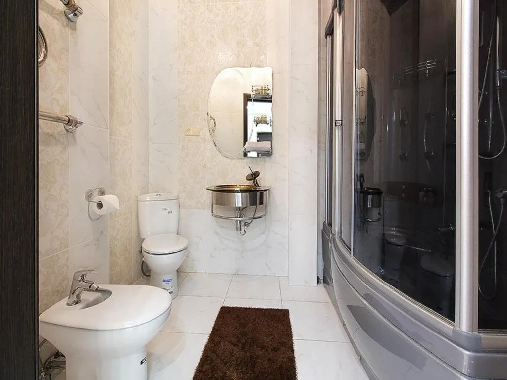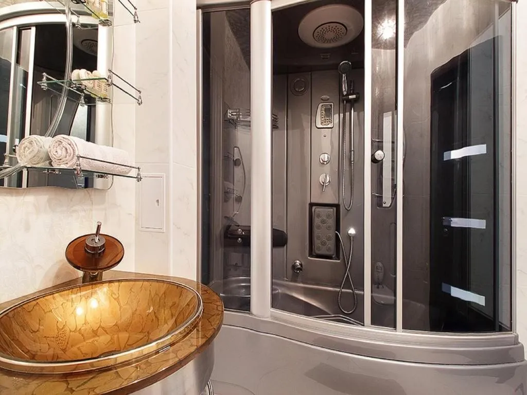 В поистине королевской спальне, с выходом в собственную ванную комнату и на остекленный балкон, можно расположиться на огромной, шикарной кровати, а также в этой же комнате - на односпальной удобной тахте. В отдельной спальне установлен комфортабельный диван-кровать, а также шкаф для хранения вещей. В изысканной гостиной с декоративным камином можно провести время за просмотром фильмов или любимых передач, расположившись на диванчике напротив плазменного TV, а также переночевать на при необходимости раскладывающемся отдельно стоящем диване. В полностью укомплектованной всей необходимой бытовой техникой (СВЧ, холодильником, посудомоечной машиной, капельной кофеваркой) и посудой можно приготовить домашние блюда. Для поддержания комфортной температуры в апартаментах функционирует кондиционер. При желании без дополнительной оплаты мы вас встретим в городе и доставим в апартаменты. Есть возможность заказать завтраки с доставкой в оговоренное время в апартаменты.