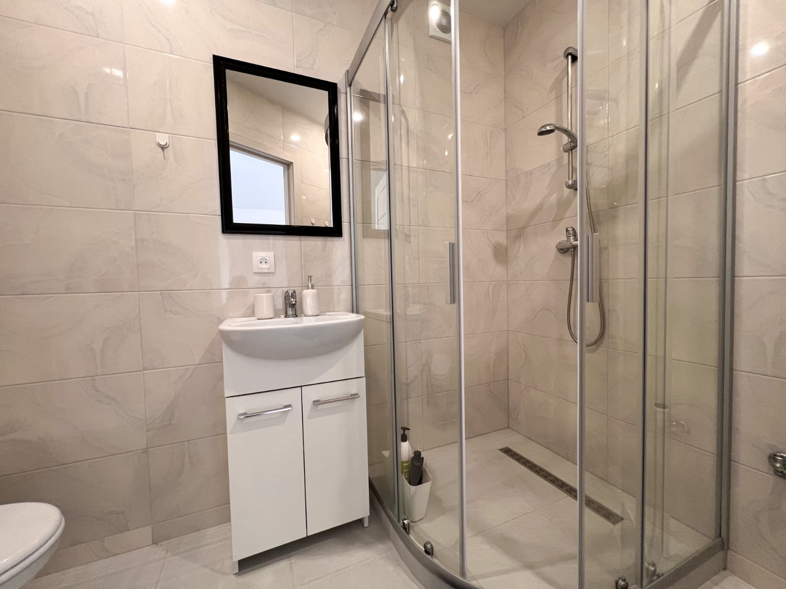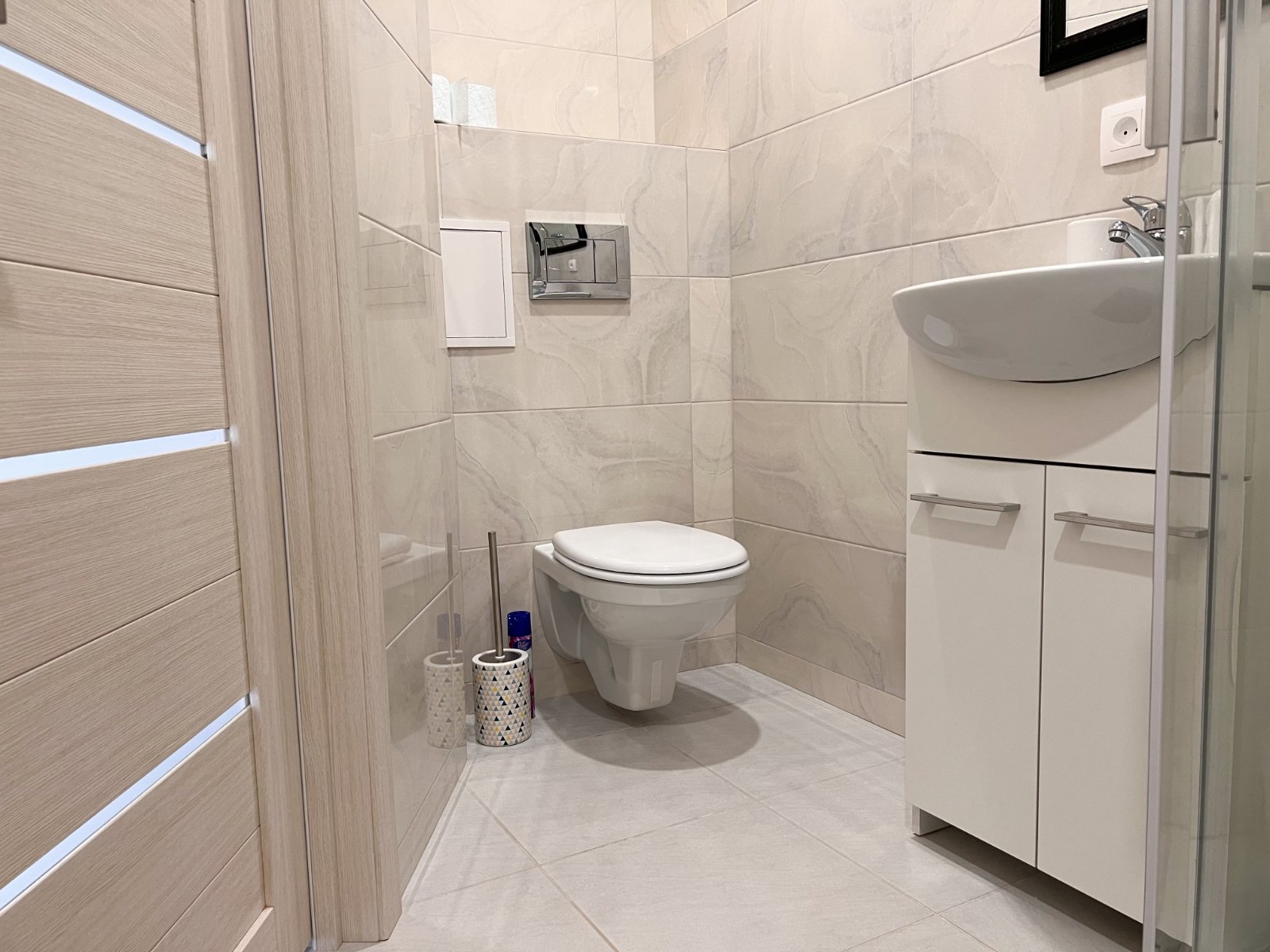 В ванной комнате вы найдете фен, жидкое мыло, гель для душа, шампунь, стиральный порошок.