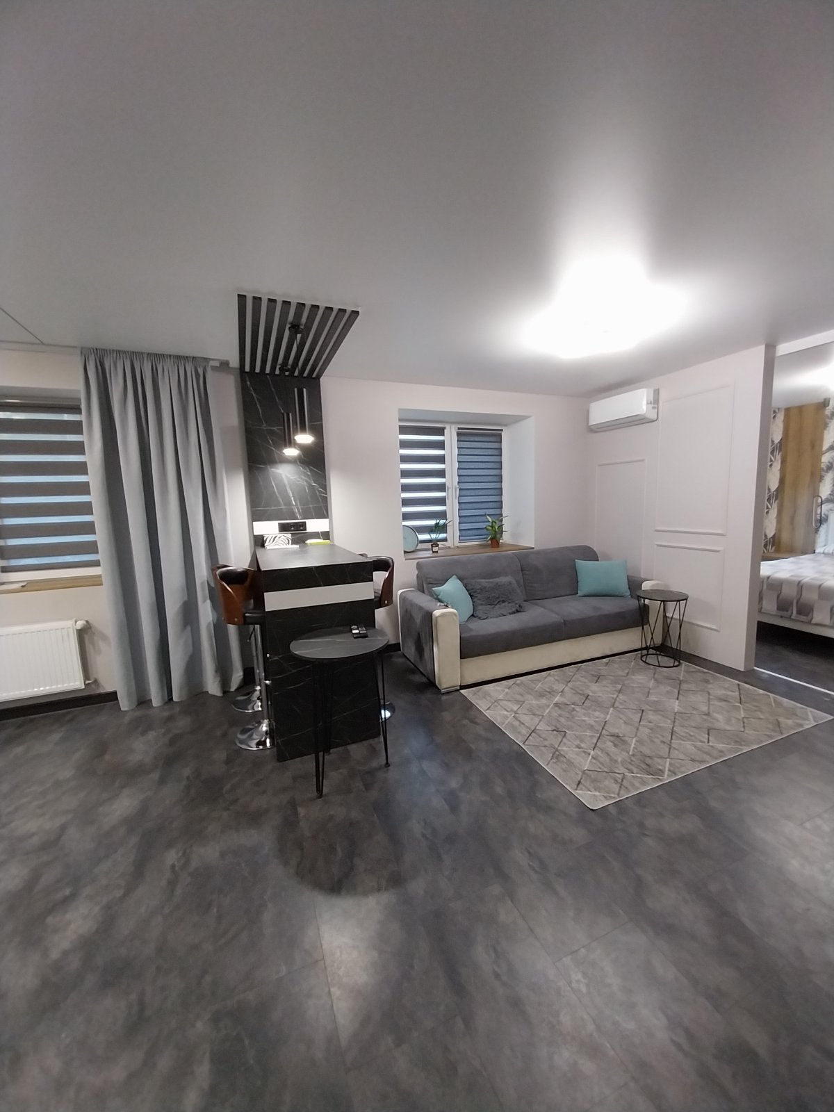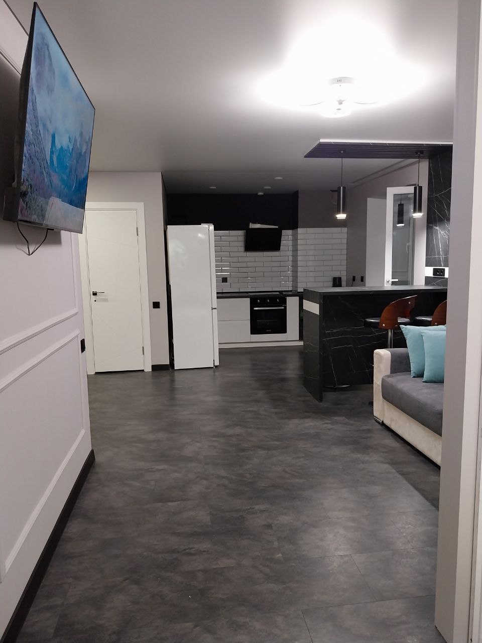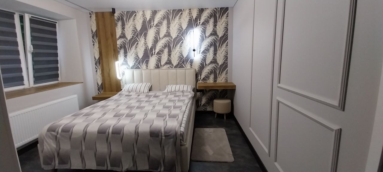 Новая двухкомнатная квартира с дизайнерским ремонтом и всем необходимым для комфортного пребывания. В квартире есть 2 двуспальные кровати , с всегда чистым постельным бельём , раскладной диван с размером спального места1.6м.2.0м., комплект чистых полотенец, микроволновая печь, духовой шкаф, вытяжка, чайник, индукционная плита, столовые приборы, штопор, вся необходимая посуда, бокалы, кондиционер, кофемашина ,чай , кофе, моющие средства, шампунь, утюг, фен, стиральная машина, бойлер.