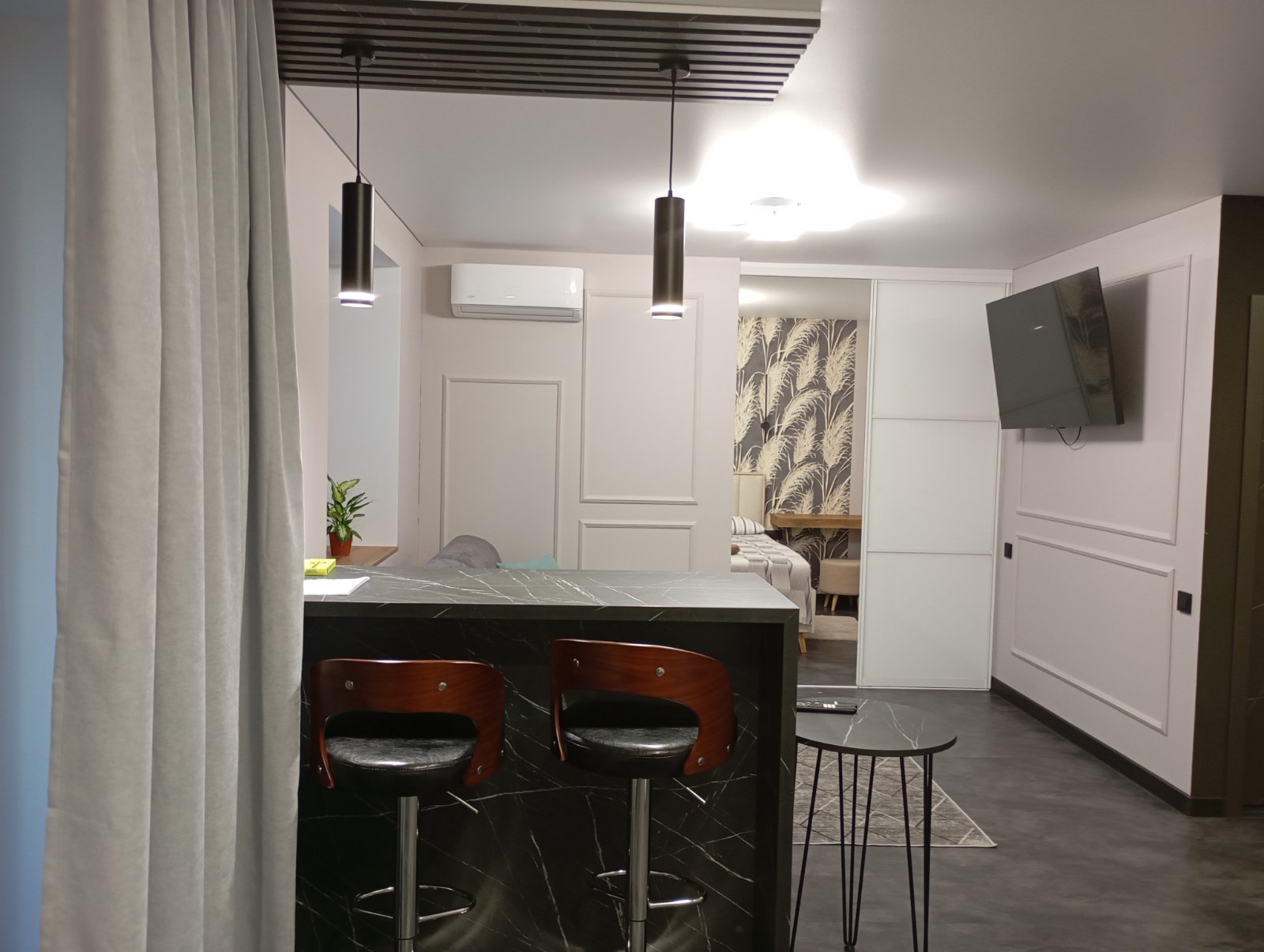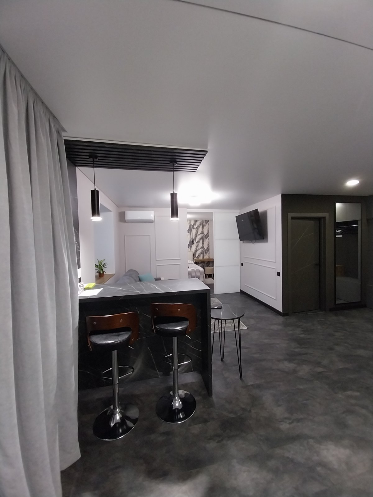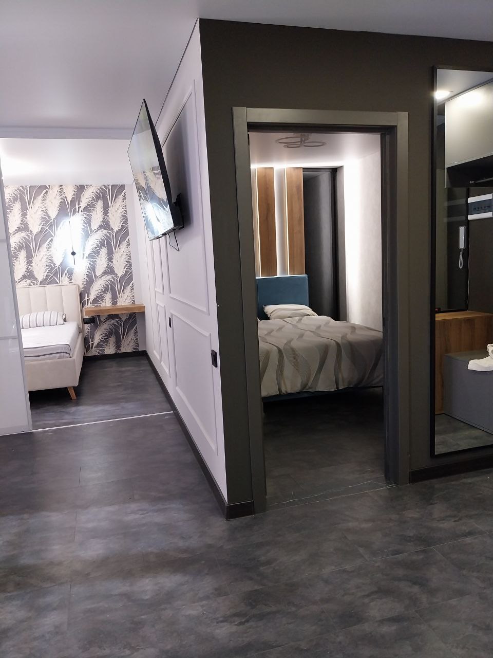 Новая двухкомнатная квартира с дизайнерским ремонтом и всем необходимым для комфортного пребывания. В квартире есть 2 двуспальные кровати , с всегда чистым постельным бельём , раскладной диван с размером спального места1.6м.2.0м., комплект чистых полотенец, микроволновая печь, духовой шкаф, вытяжка, чайник, индукционная плита, столовые приборы, штопор, вся необходимая посуда, бокалы, кондиционер, кофемашина ,чай , кофе, моющие средства, шампунь, утюг, фен, стиральная машина, бойлер.