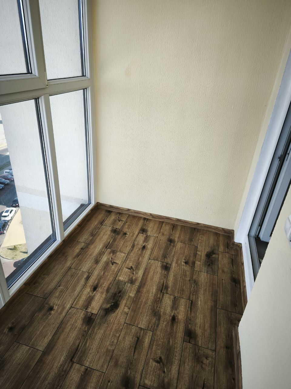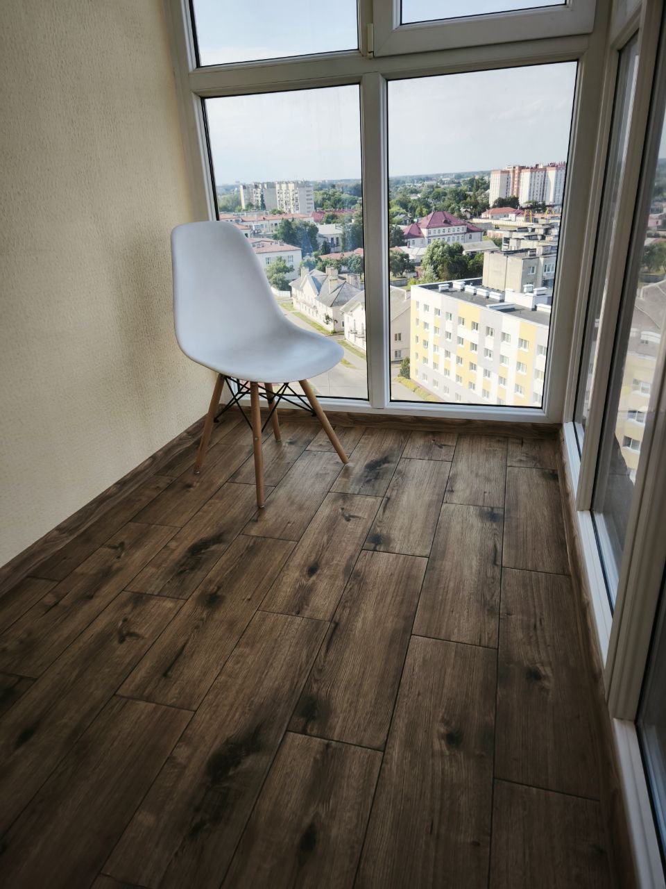 Балкон с французкими окнами, с которого открывается прекрастный вид на город.