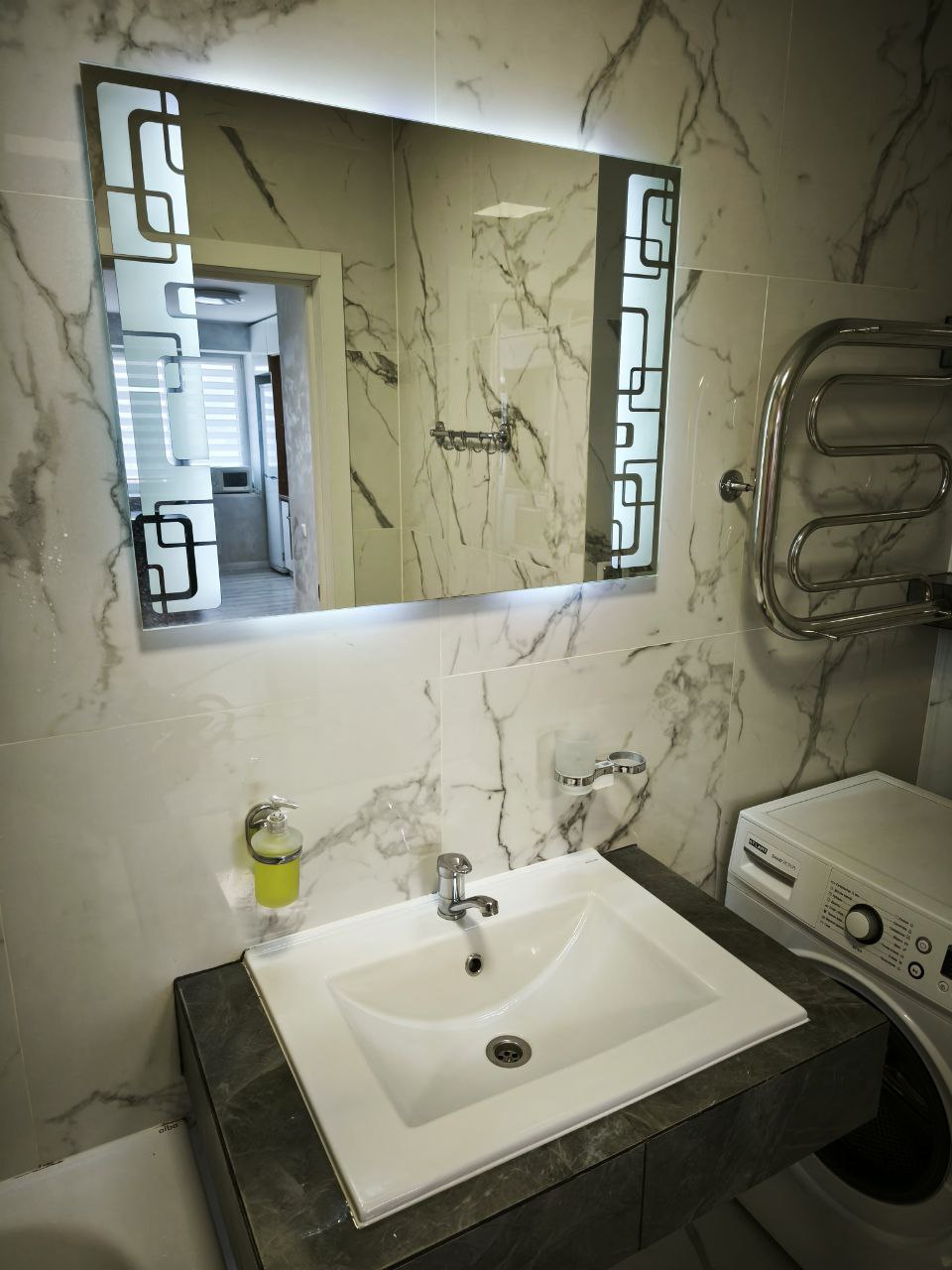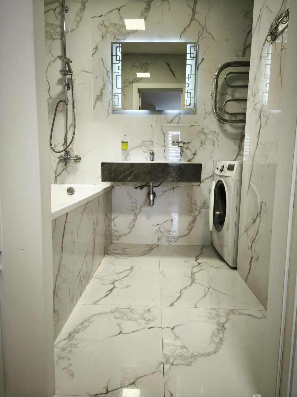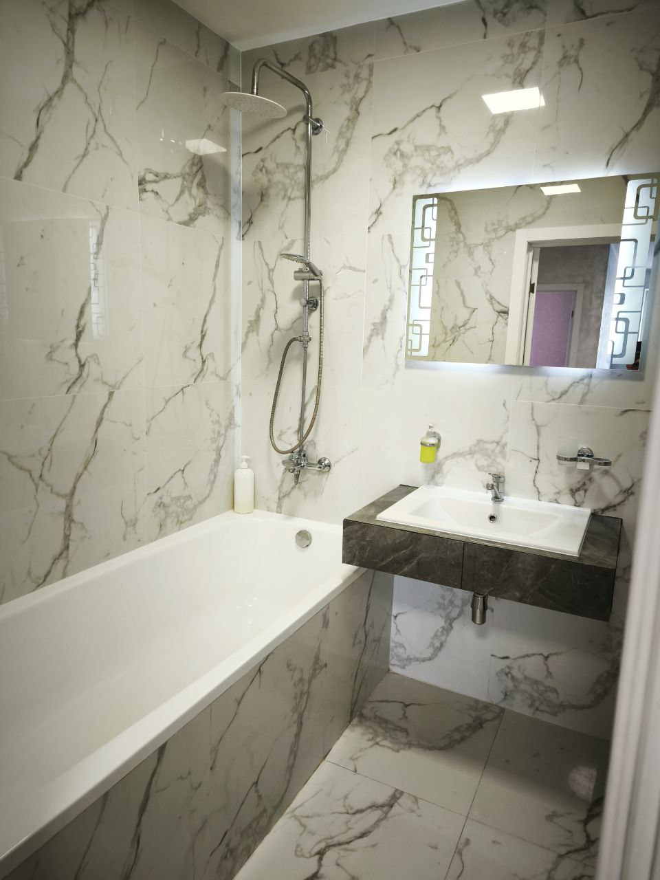 Квартира укомплектована новой мебелью и сантехникой.Есть стиральная машина,ванная, фен,утюг. Smart TV и безлимитный интернет Wi-fi.