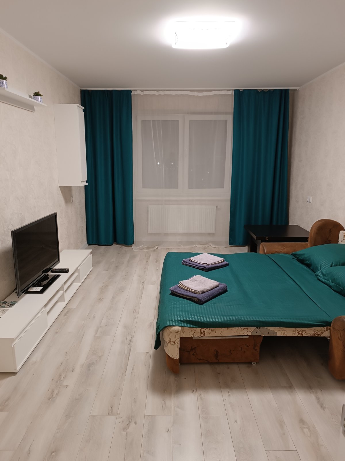 В квартире есть большой современный диван ,который ,при необходимости раскладывается и получается 2дополнительных спальных места .Для тех ,кто не любит спать на диванах,в спальне имеется кровать с ортопедическим матрасом . Всего с комфортом здесь может расположиться до 4 взрослых.