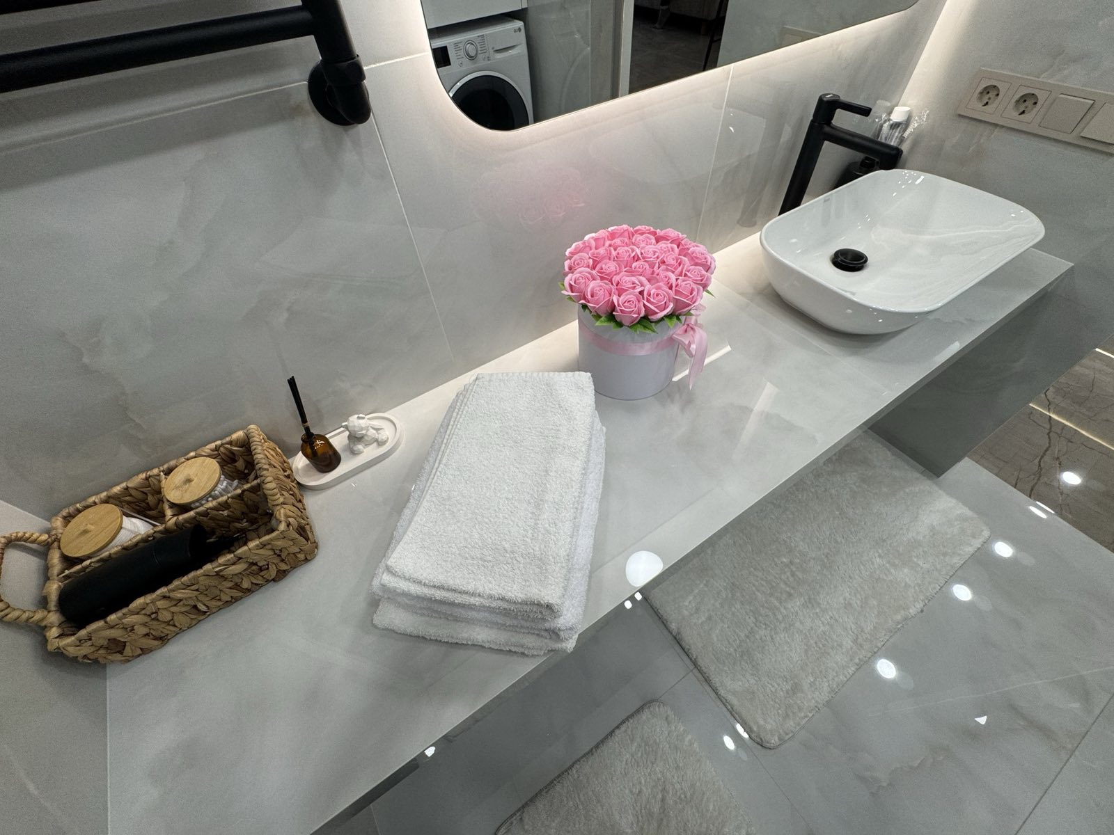 УдобстваБеспроводной интернет Wi-Fi, Телевизор, Домофон, Полотенца, Кондиционер, Постельное бельё, Мыло, Туалетная бумага, Стиральная машина, Кофе, чай, Утюг, Фен, Шампунь, Лифт, Открытый балкон/лоджия, Душевая кабинка, Автономный подогрев воды (бойлер/колонка), Холодильник, Микроволновая печь, Посуда