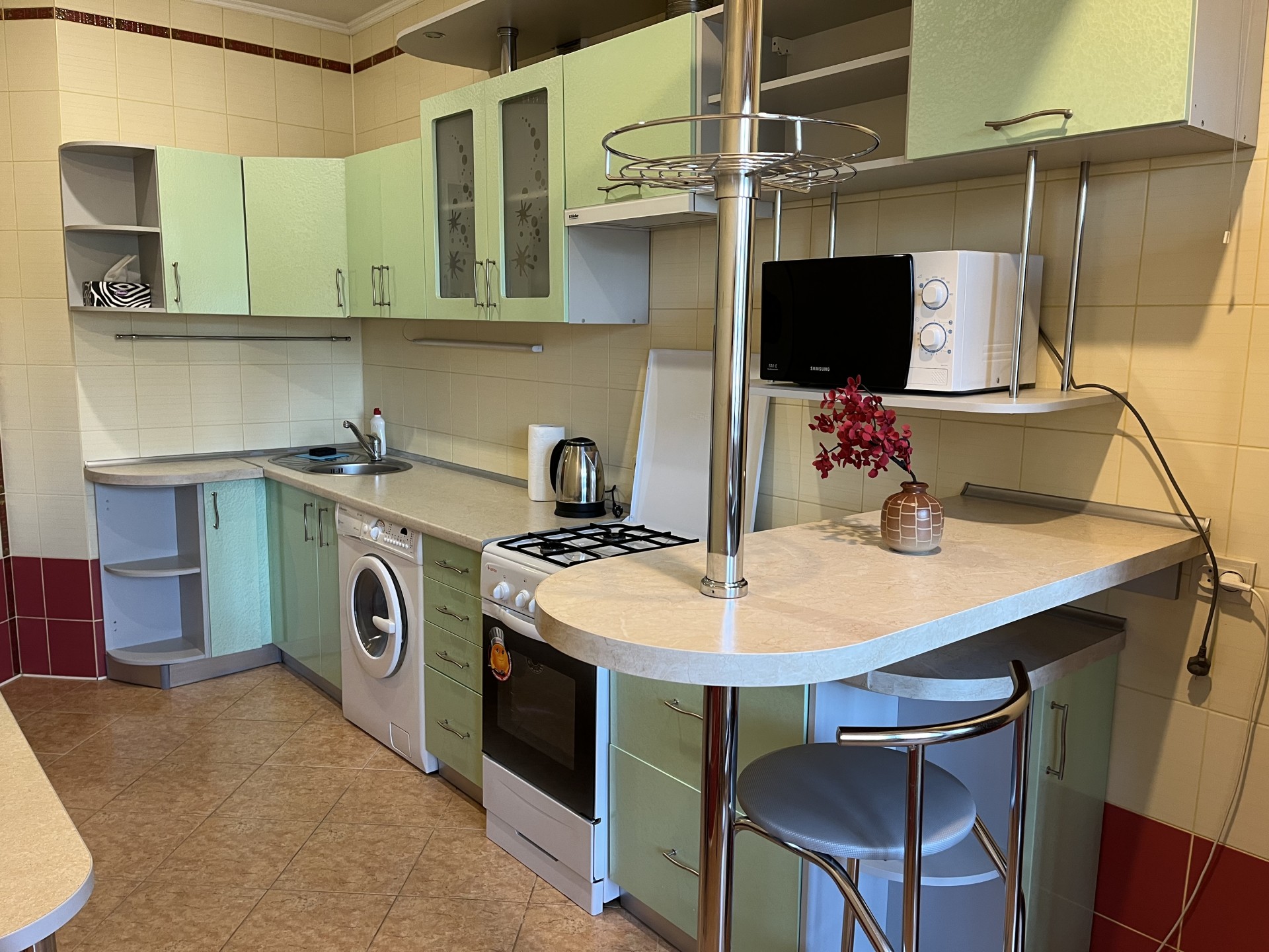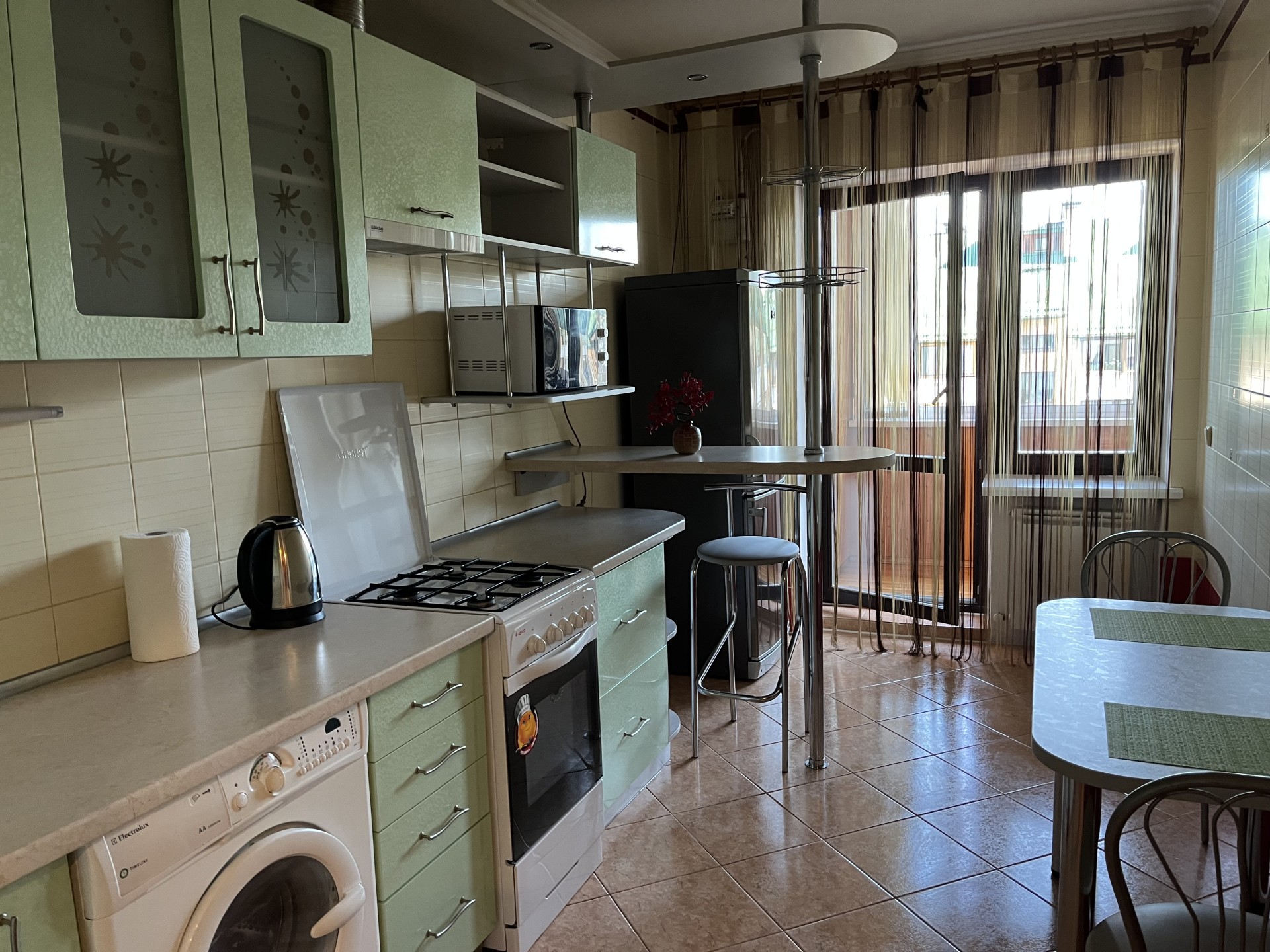 УдобстваБеспроводной интернет Wi-Fi, Телевизор, Домофон, Полотенца, Кабельное/спутниковое телевидение, Постельное бельё, Мыло, Туалетная бумага, Стиральная машина, Кофе, чай, Утюг, Фен, Шампунь, Застеклённый балкон/лоджия, Ванна, Холодильник, Микроволновая печь, Посуда