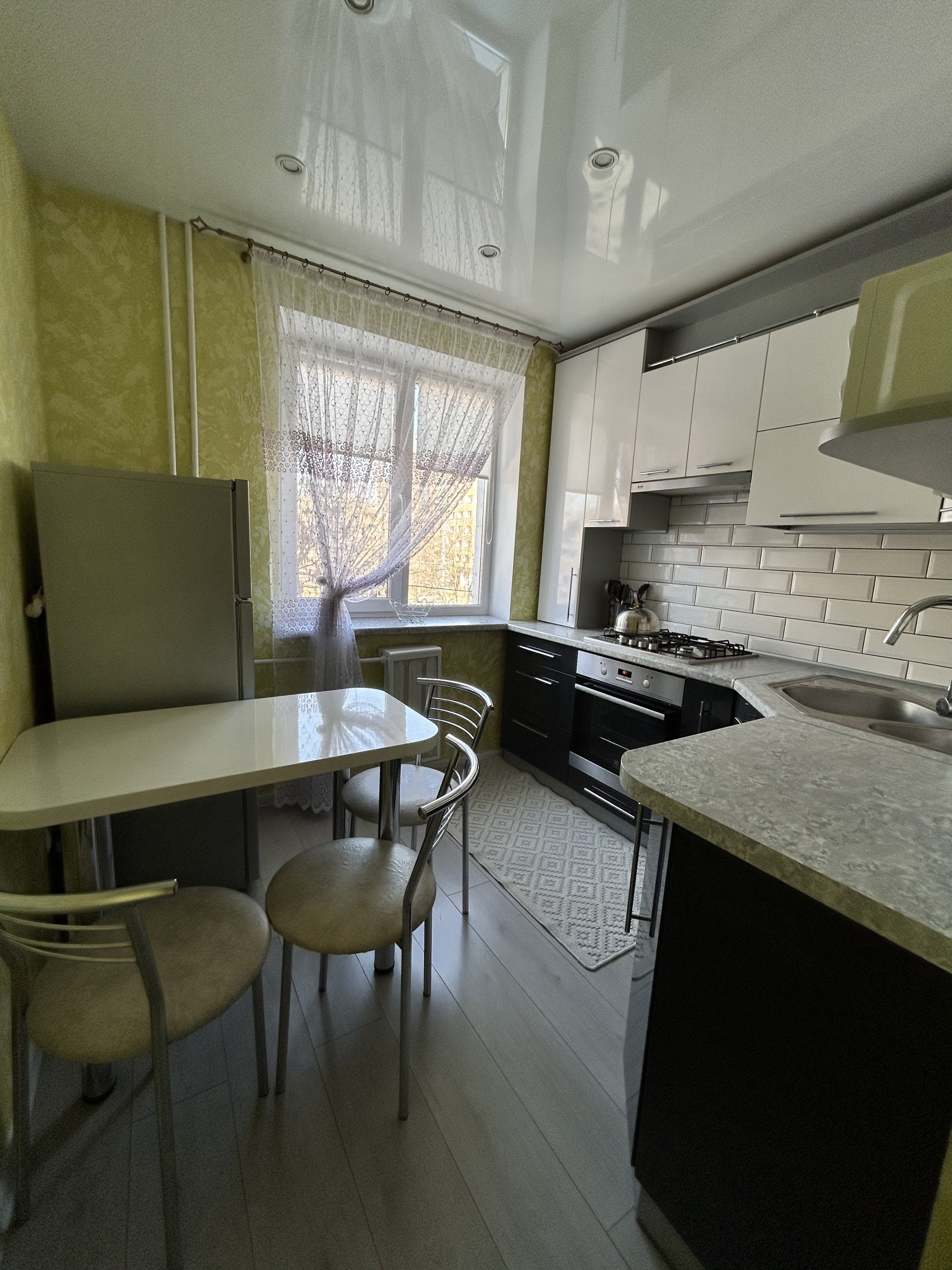 Кухня оборудована микроволновкой, холодильником, духовым шкафом и всей необходимой посудой для приготовления пищи и приборами. Всегда в наличии чай, кофе, сахар.