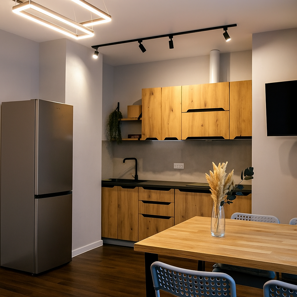 Перед каждым заездом проводится полная генеральная уборка всей квартиры, включая кухню и столовые приборы