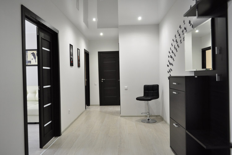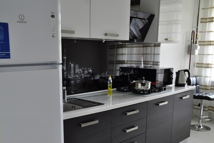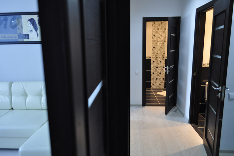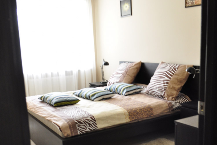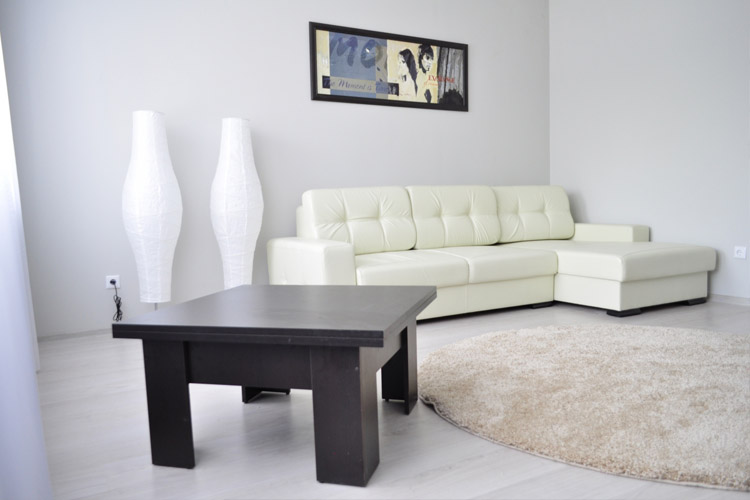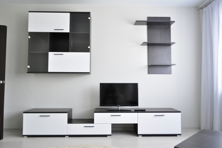 В гостиной: раскладной диван (дополнительное спальное место для 1-2 человек), письменный стол, ТВ с плоским экраном, шкаф для одежды. Спальня: большая кровать с белоснежным постельным бельем, комод для одежды. Кухня оборудована всем необходимым: гарнитур, столовая группа, раковина, плита, духовка, микроволновая печь, чайник, посуда, столовые приборы, приветственный продуктовый набор (чай, кофе, печенье, сок). В ванной: фен, индивидуальный набор для душа. В прихожей тумбочка для обуви, вешалка.