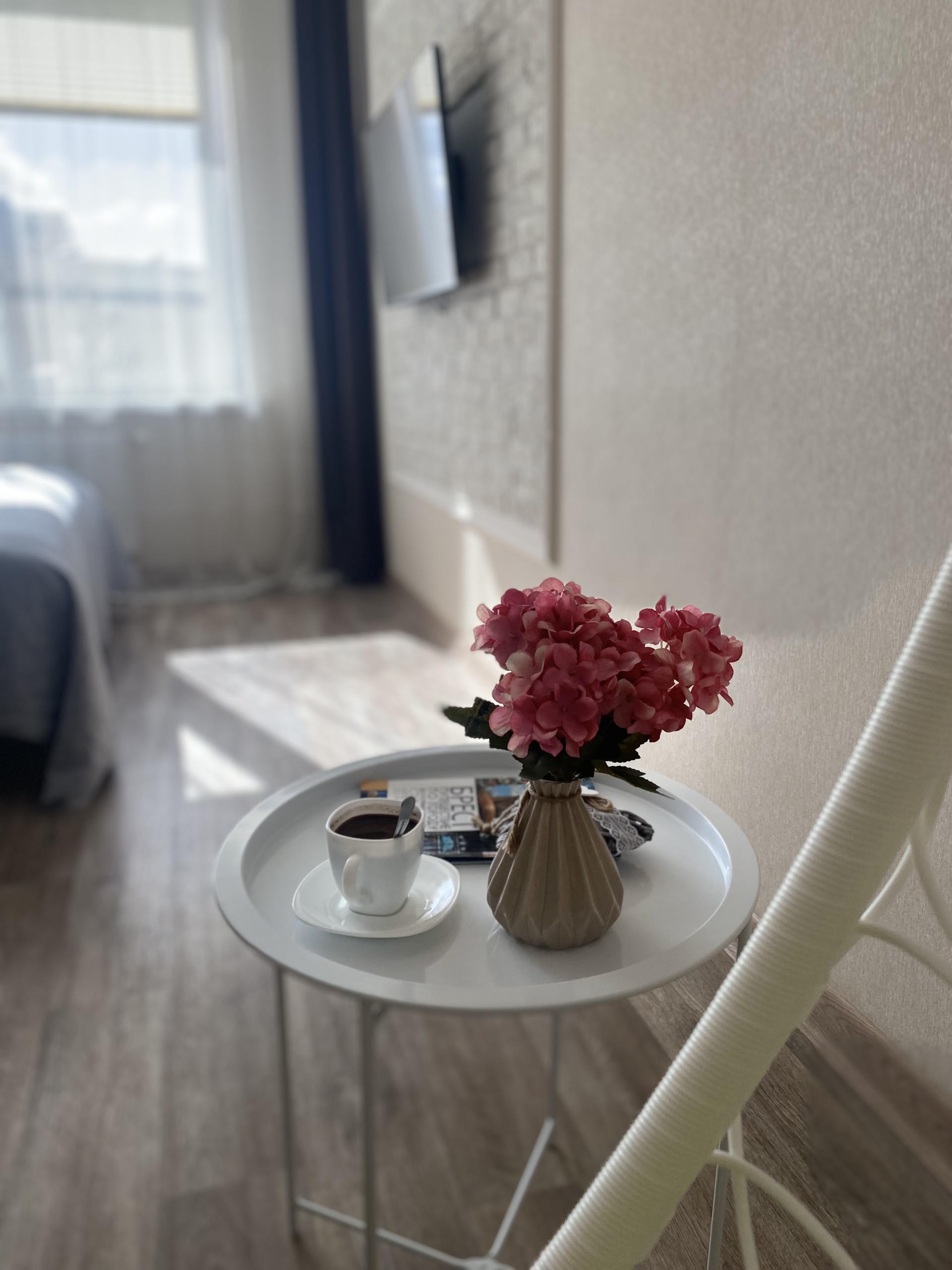 Квартира-студия, сдается на сутки, часы. Светлый, уютный интерьер (евроремонт). В квартире имеется все для комфортного проживания и отдыха (2+2): кондиционер, кабельное ТВ, безлимитный Wi-Fi, постельное белье, полотенца, микроволновка, холодильник, электрочайник, индукционная плита, кофеварка, посуда, TV, утюг, глад. доска, стиральная машина, фен, средства гигиены. Чай, кофе.