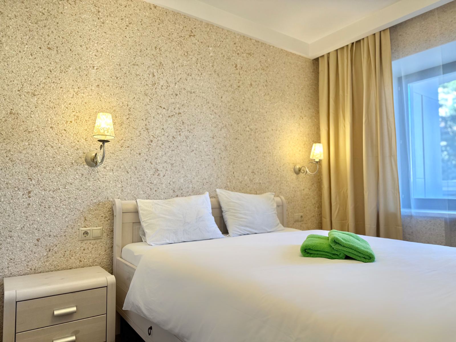 Апартаменты отлично подходят для влюбленных пар, фотосессий, бизнес-путешественников, туристов, семей с детьми. В апартаментах 1 двуспальная кровать, 2 двуспальных дивана и 1 диванчик. Вся мебель новая. На кроватях застелено свежее постельное белье. Каждому гостю предоставляется банное полотенце. В ванной комнате вы найдете фен, жидкое мыло, гель для душа, шампунь, стиральный порошок.